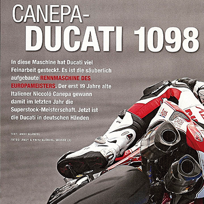 Dieses Fachwissen gibt Mario natürlich gerne an seine Kunden weiter. Aus diesem Grund verlassen die meisten Neumotorräder die Werkstatt sportlich optimiert, was das Image der Ducati Motorräder noch unterstreicht. Einige seiner Motorräder sind in den Zeitschriften Motorrad und PS erfolgreich getestet.