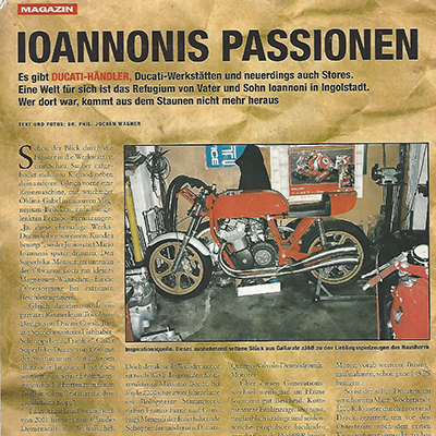 Die Firma wurde 1975 als freie Werkstatt für Motorräder und PKW durch Giuseppe Ioannoni und dessen Frau in Ingolstadt gegründet. Ducati und Moto-Guzzi Vertraghändler wurde man im Jahr 1977. Ein Jahr später, 1978 wurden MV-Agusta Motorräder in der Firma betreut. 1980 trat Sohn Mario Ioannoni in die Firma ein.